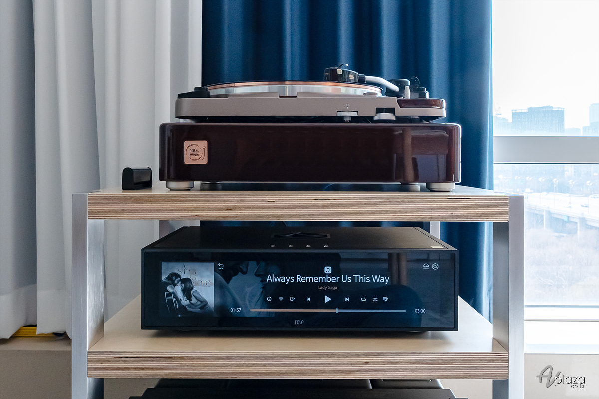설치에는 미국을 대표하는 하이파이 제조사 매킨토시(McIntosh) MA9500 인티앰프와 토렌스(Thorens) TD-124 DD 140주년 한정판 턴테이블 그리고 하이파이로즈(Hifirose) RS130 네트워크 트랜스포트를 사용하였습니다.