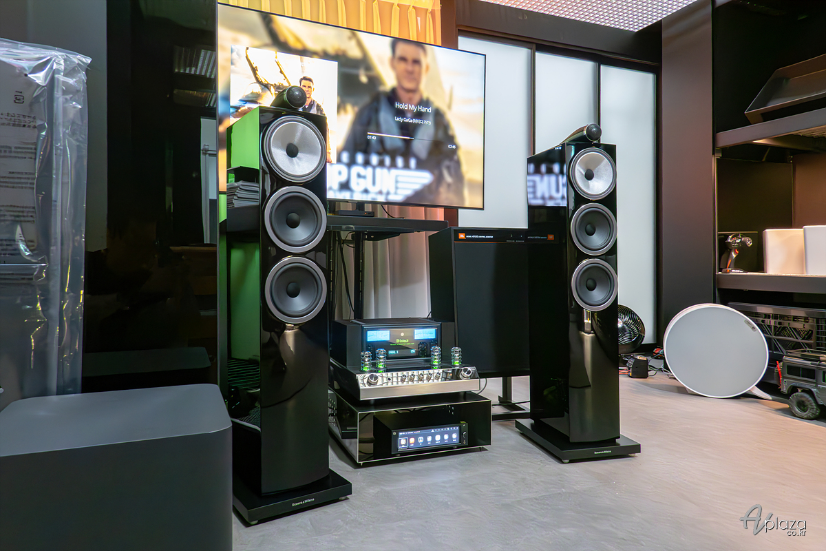 설치에는 영국을 대표하는 스피커 제조사 B&W(Bowers & Wilkins) 700 시리즈 S3 제품 중 703 S3 플로어스탠딩 스피커와 미국 하이파이 제조사 매킨토시(McIntosh) MA352 인티앰프를 매칭하였습니다. 소스기기는 하이파이로즈(Hifirose) RS250A 네트워크 플레이어를 사용하였습니다.