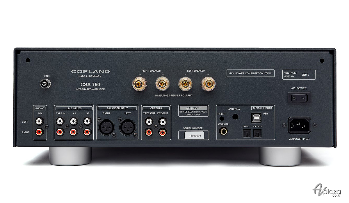코플랜드 CSA150 인티앰프는 플래그십 모델로 B&W 스피커와 좋은 매칭을 보여줍니다.