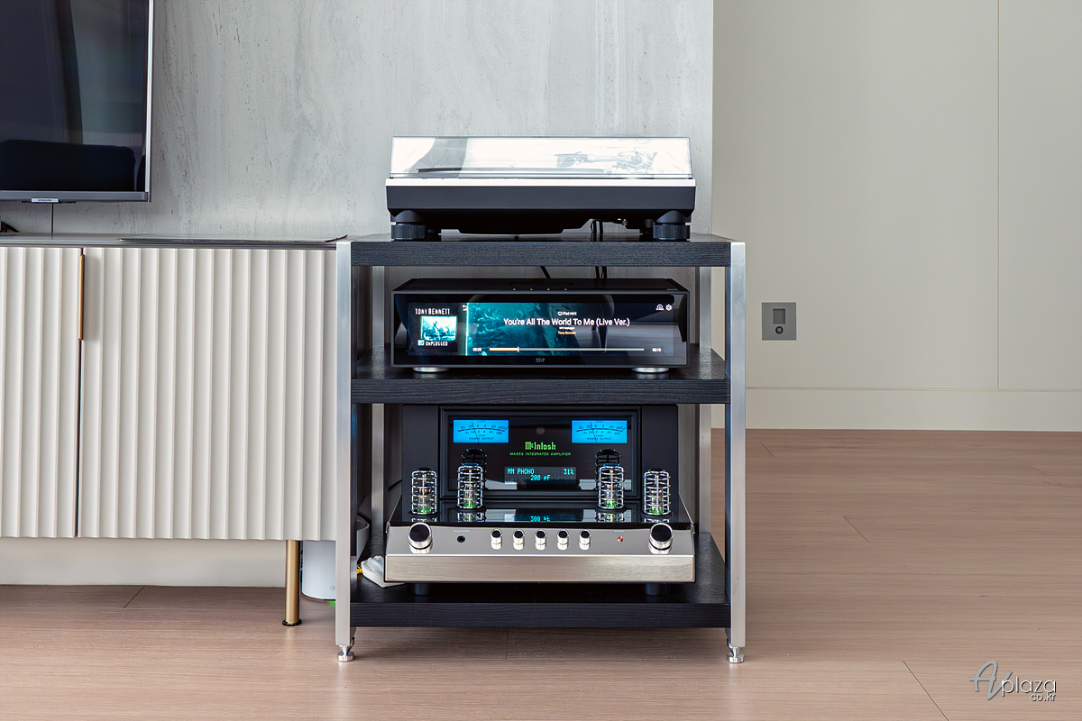 고객님은 몇 달 전 AV 플라자를 통해 하이파이 시스템을 구축하셨으며, 이번에 턴테이블을 추가하기를 원하셨습니다. 제품선택을 위해 AV 플라자에 방문하시어 여러 제품을 비교하신 후 최종적으로 턴테이블을 결정하셨습니다. 전체 시스템은 거실에 설치하였습니다.