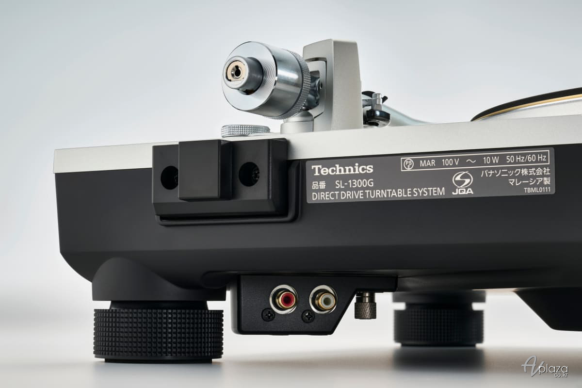 출력은 케이블의 착탈이 가능한 포노 단자를 제공하며, 금도금 단자를 탑재합니다. 이외에 접지 단자를 갖췄습니다. SL-1300G는 테크닉스 전통의 심플하고 쾌적한 조작을 할 수 있는 레이아웃은 그대로 이어받은 심플모던 디자인을 채용하였습니다. 색상은 실버와 블랙을 제공하며, 톤암 베이스 주위의 요소를 베이스 컬러와 통일시켜 세련된 마감을 제공합니다. SL-1300G의 전원부에는 새로운 다단 고속 스위칭 전원 공급 장치(플래그십 레퍼런스 SL-1000R에 사용된 것과 유사)는 안정적인 공급 용량과 적은 리플 및 허밍을 제공합니다.