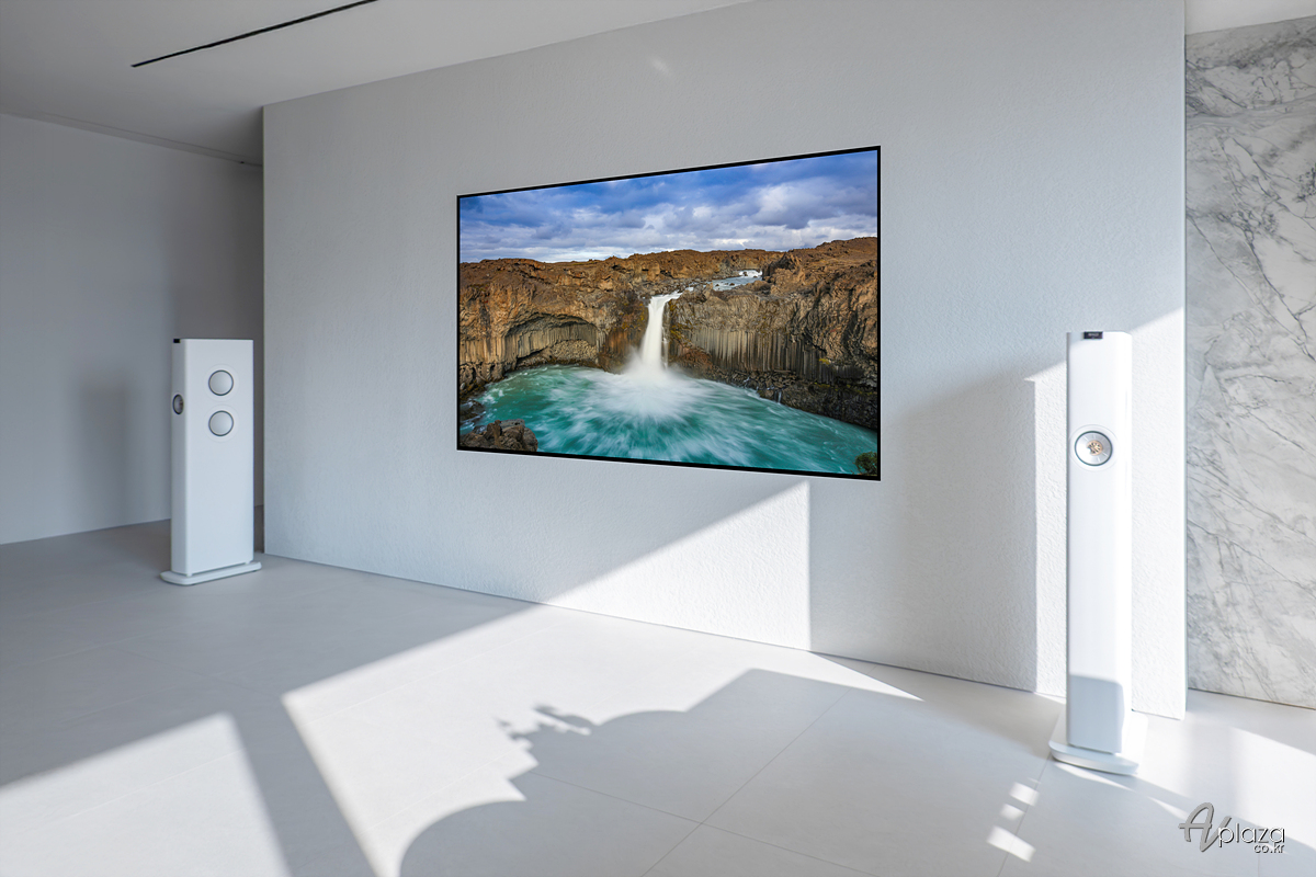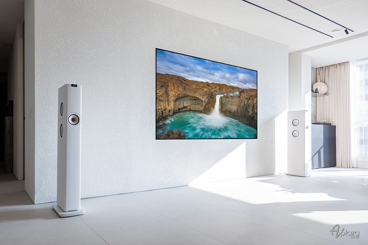 설치에는 영국 스피커 제조사 케프(KEF) 무선 하이파이 액티브 스피커 신제품 LS60 와이어리스(LS60 Wireless)를 사용하였습니다. 색상은 거실 인테리어와 잘 어울리는 화이트 색상을 선택하셨습니다.