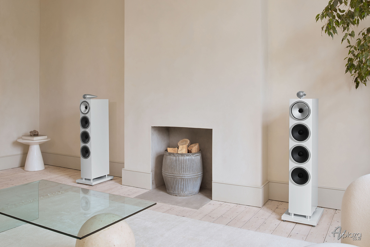 B&W 702 S3 스피커의 모습입니다. 인테리어와 잘 어울리는 화이트 색상을 선택하셨습니다.