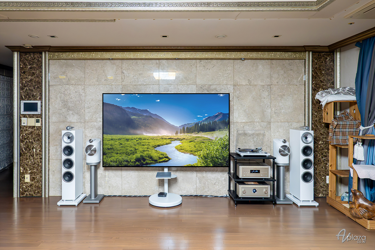 고객님은 기존에 B&W 포메이션 듀오(Formation Duo)와 포메이션 오디오(Formation Audio)를 통한 무선 하이파이 시스템을 사용 중이셨으며, 이번에 하이파이 시스템을 새롭게 추가하기 원하셨습니다. 제품 선택을 위해 AV 플라자에 방문하시어 여러 제품을 청음하신 후 최종적으로 시스템을 결정하셨습니다. 전체 시스템은 거실에 설치하였습니다.