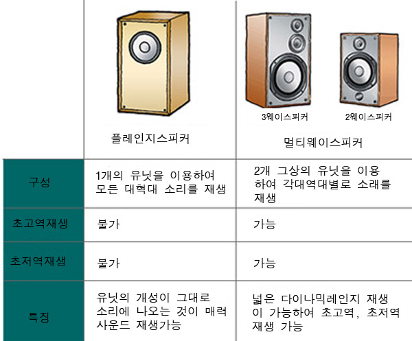 1개의 유닛으로도 소리는 낼수는 있지만 보다 넓은 소리의 대역을 커버하기 위해서는 다양한 대역대의 유닛들이 필요로 합니다.