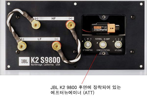 최근에는 사실 많이 사용되지는 않지만 아직도 JBL의 전통적인 모니터 스피커나 최상급 K2 시리즈나 이 에터뉴에이터가 장착되어 있습니다.