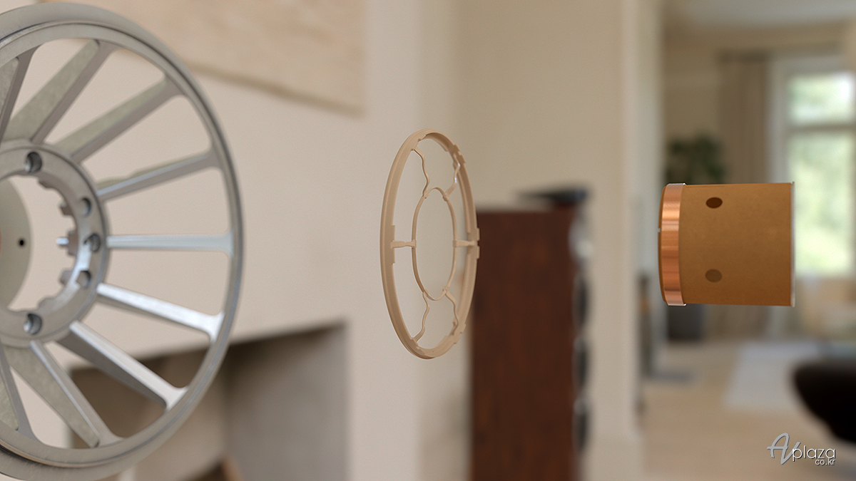 ▲ 양극산화 처리된 솔리드 바디 트위터 온 탑: 드라이버간 음 분리 개선