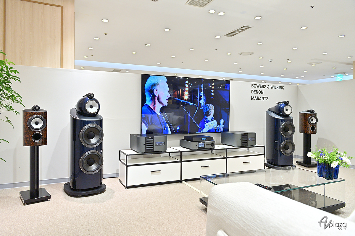 B&W 부스에는 705 S3와 데논, 마란츠 제품의 매칭도 선보입니다.