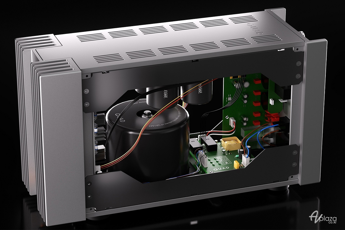 쿼드 303 파워앰프는 오리지널 모델의 신뢰성, 유연성, 섬세한 사운드를 유지하는 것을 목표로 합니다. 이 새로운 컴팩트 파워앰프는 채널당 50W(8Ω), 70W(4Ω)의 정격 출력을 제공하며, 303 파워앰프를 위한 피터 워커의 회로 혁신의 업데이트 버전인 트리플 출력 스테이지를 특징으로 합니다. 303 파워앰프의 앰프 내의 피드백 앰프는 네거티브 피드백이 훨씬 적게 필요하며, 출력 스테이지가 온도 변동에 더 강해져 왜곡을 줄여줍니다.