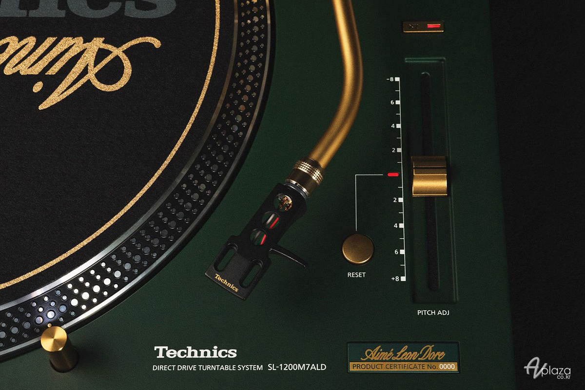 이번에 공개된 한정판 모델 SL-1200M7ALD는 테크닉스의 DJ용 주력 모델인 SL-1200MK7을 기반으로, ALD 특유의 세련된 감각을 상징하는 깊은 멀버리 그린(Mulberry-Green) 색상을 입혀 아날로그 사운드와 그를 둘러싼 문화적 가치를 기념하는 프로젝트로 기획되었습니다.