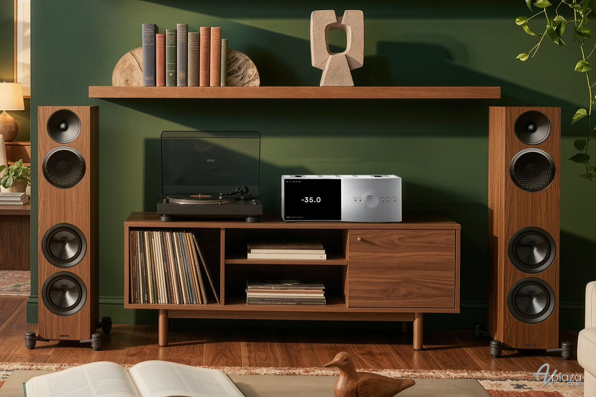 공학적 설계의 정밀함은 하부 지지 구조에서도 드러난다. 플로어스탠딩 모델에는 상위 라인업에서나 볼 수 있었던 아웃리거 격리 피트(Outrigger Isolation Feet)가 새롭게 도입되었습니다. 이는 스피커 캐비닛을 바닥과 물리적으로 격리하여 불필요한 진동 전달을 차단하고, 저역의 번짐 현상(Smear)을 억제해 더욱 명료하고 깊이 있는 저역 재생을 도와줍니다. 단순한 외관 개선을 넘어 실제 음질에 직접적인 영향을 미치는 하이엔드급 디테일이 대거 투입된 셈입니다.