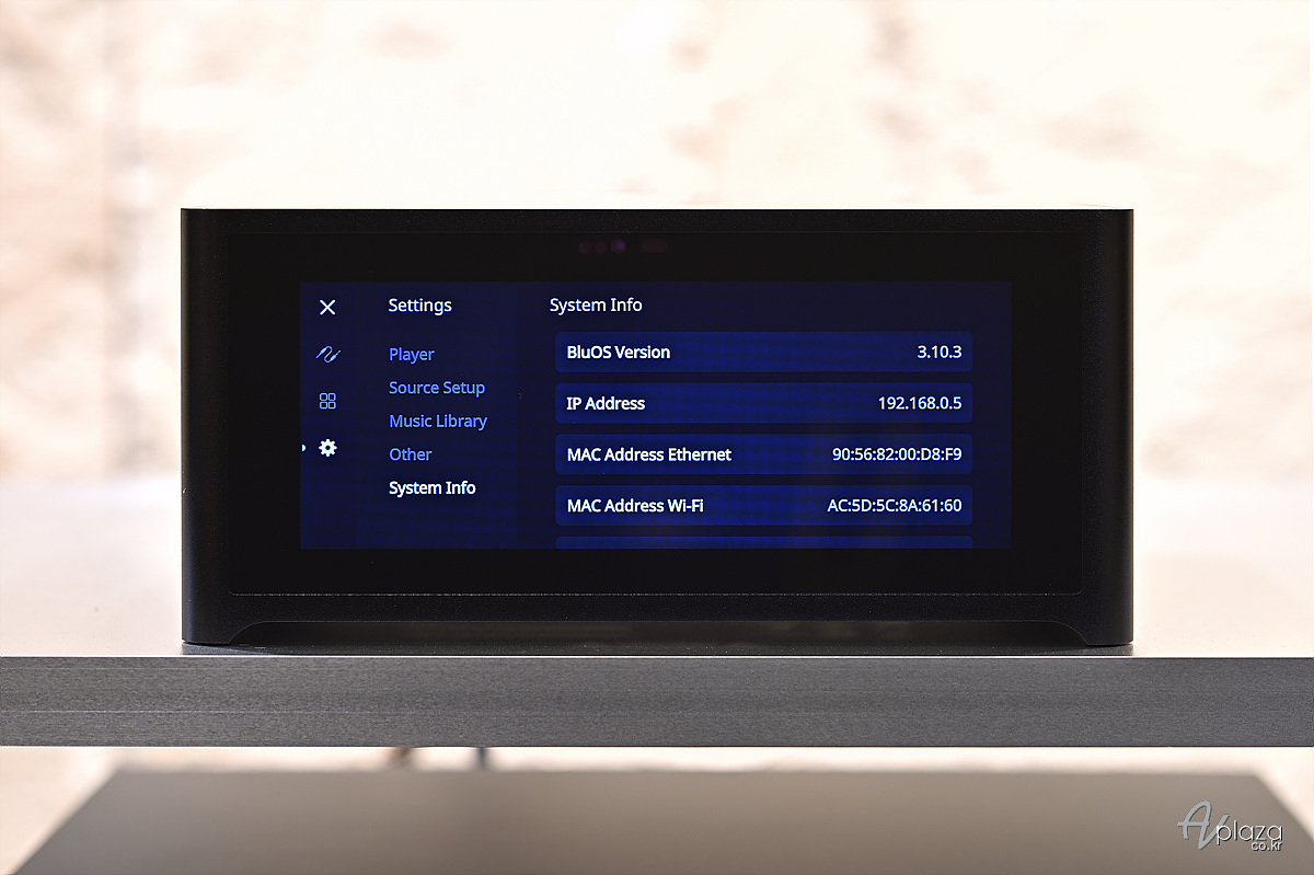 NAD M10은 물리적인 버튼이 존재하지 않으며, 전면 터치패널이나 BluOS 전용앱으로 모든 조작이 가능합니다.