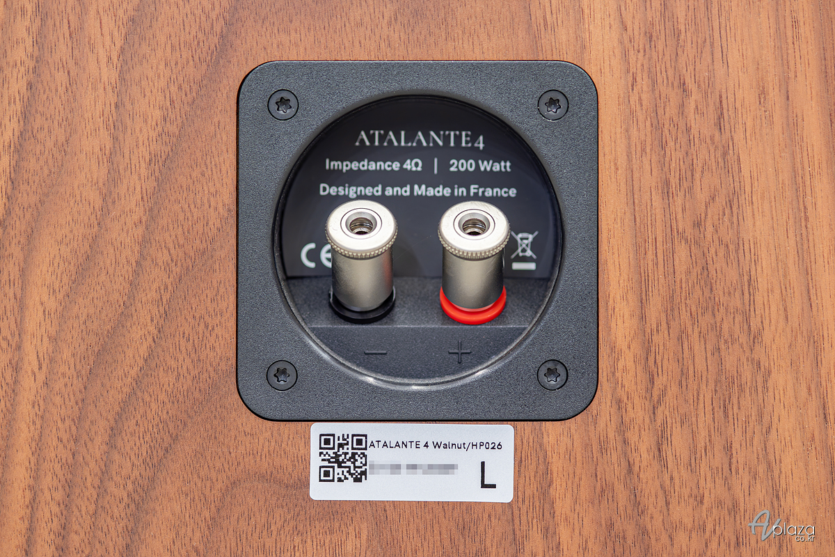 아탈란테 4 스피커 터미널. 아탈란테 4는 임피던스 4Ω. 200W 파워핸들링 사양을 제공합니다.