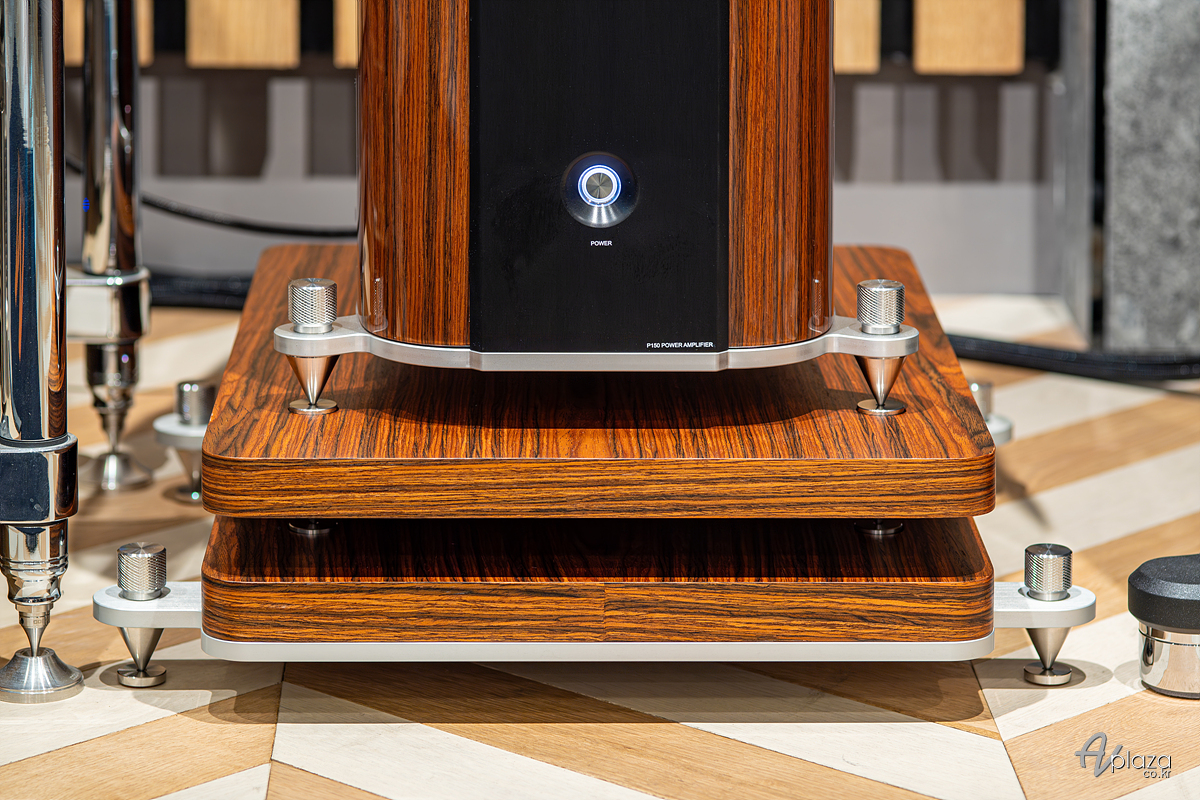 피요르오디오 P150 파워앰프 하단에는 전원버튼이 위치하며, 전용 스파이크를 제공합니다. 별매의 앰프 스탠드도 함께 세팅하였습니다.