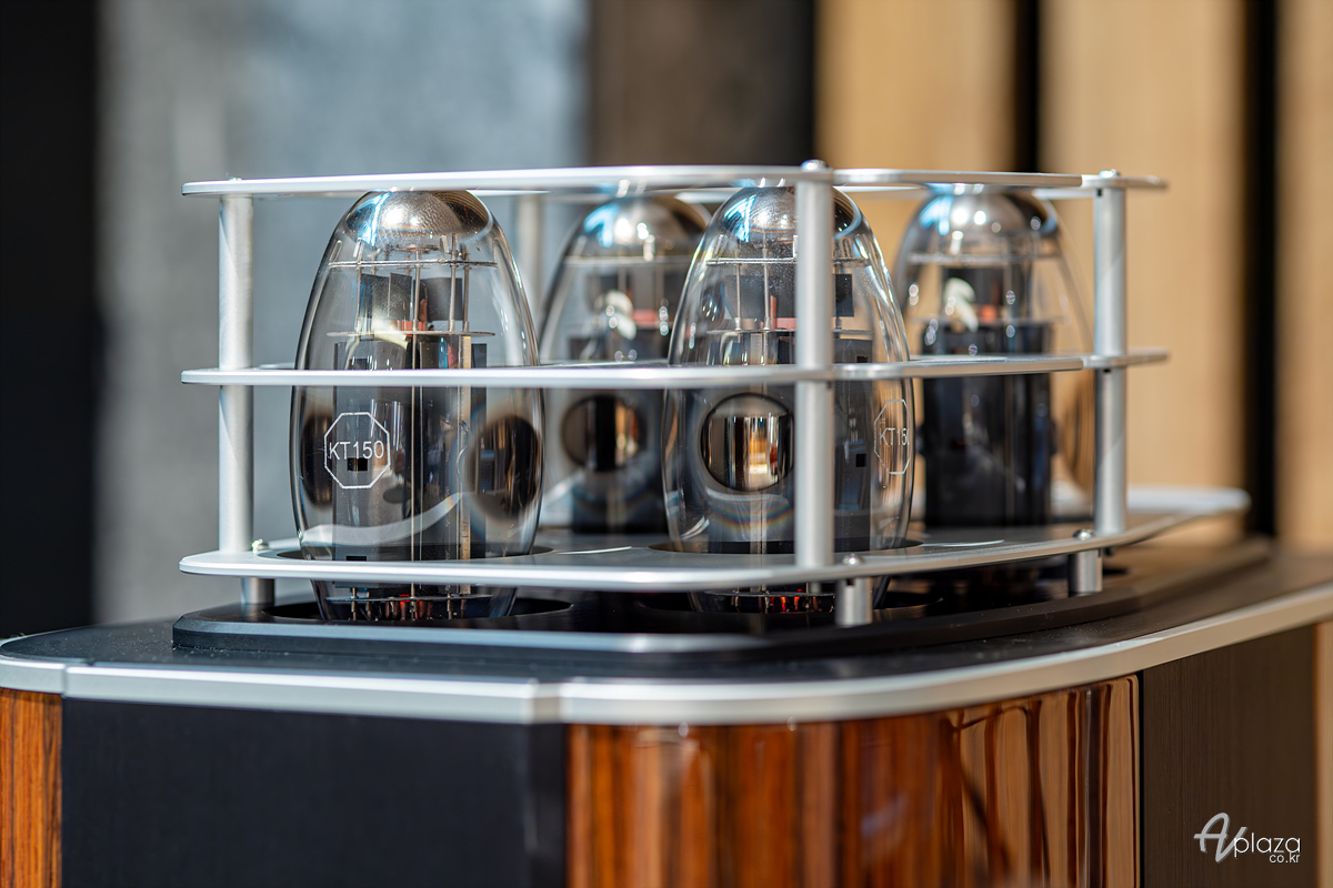 모델 P150은 KT150 진공관 4개를 탑재하여 클래스 A 구동으로 채널당 90W의 출력을 제공합니다.