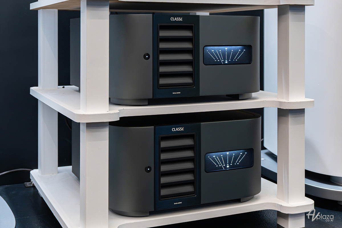 설치에는 영국을 대표하는 스피커 제조사 B&W(Bowers & Wilkins) 800 시리즈 다이아몬드 4세대 중 플래그십 모델인 801 D4와 사운드 유나이티드(Sound United) 산하의 캐나다 하이파이 제조사 클라세(Classe)의 플래그십 라인업인 델타 프리(Delta PRE) 프리앰프와 델타 모노(Delta MONO) 모노블럭 파워앰프를 매칭하였습니다. 소스기기는 에버솔로(Eversolo) DMP-A6 네트워크 플레이어를 사용하였습니다.