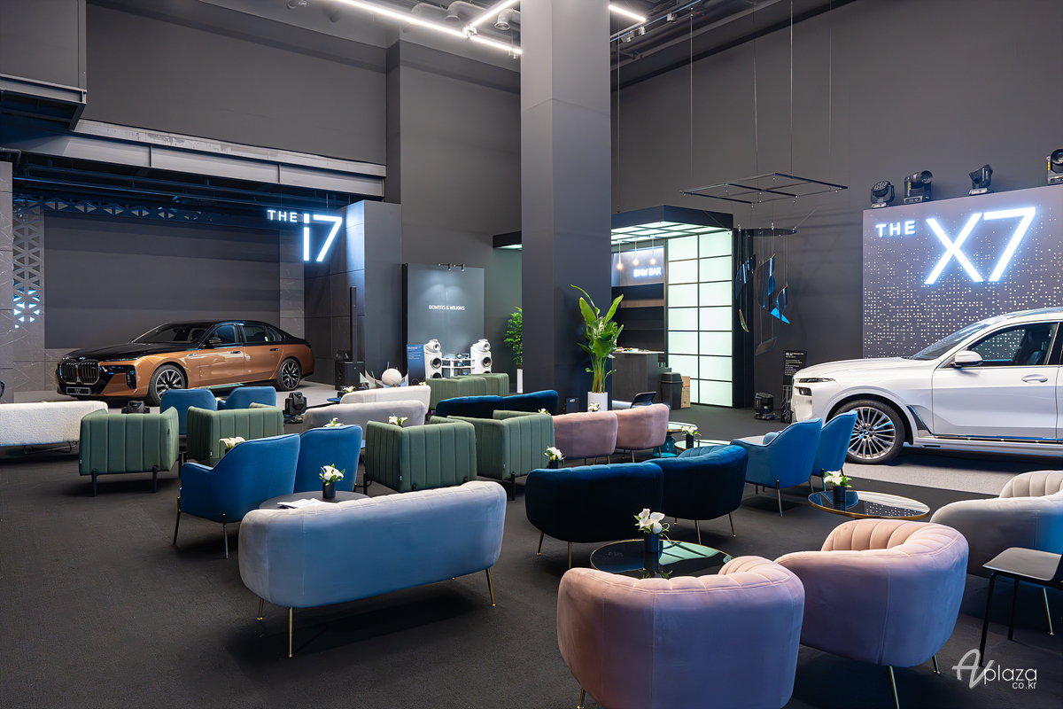모든 시스템의 설치를 완료한 BMW 엑설런스 라운지 2024 행사장의 모습입니다.