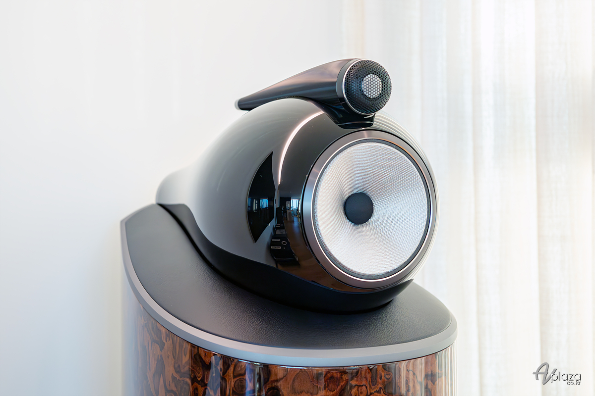 B&W 801 D4 시그니처에 탑재한 터빈 헤드. 다이아몬드 돔 트위터와 컨티넘 콘 미드레인지 드라이버를 탑재합니다.