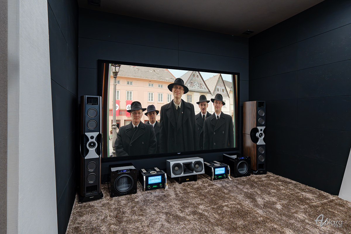 업그레이드에는 영국 스피커 제조사 PMC의 플래그십 모델인 페네스트리아(Fenestria) 스피커와 미국을 대표하는 하이파이 제조사 매킨토시(McIntosh) C55 프리앰프, MC1.25KW 모노블럭 파워앰프를 매칭하였습니다. 홈시어터 스피커는 매립형 스피커 Ci 시리즈를 사용하였습니다. 서브우퍼는 SVS SB4000 2대를 사용하였습니다. 이외에 기존에 사용하시던 센터스피커 등은 그대로 활용했으며, 프런트 스피커에 페네스트리아, 리어 및 리어백, 오버헤드 채널에 Ci30 스피커를 사용하였습니다. AV 앰프는 데논(Denon) 플래그십 AVC-A1H를 사용하였습니다. 대화면 구현을 위한 프로젝터는 LG BU50NST를 사용하였습니다.