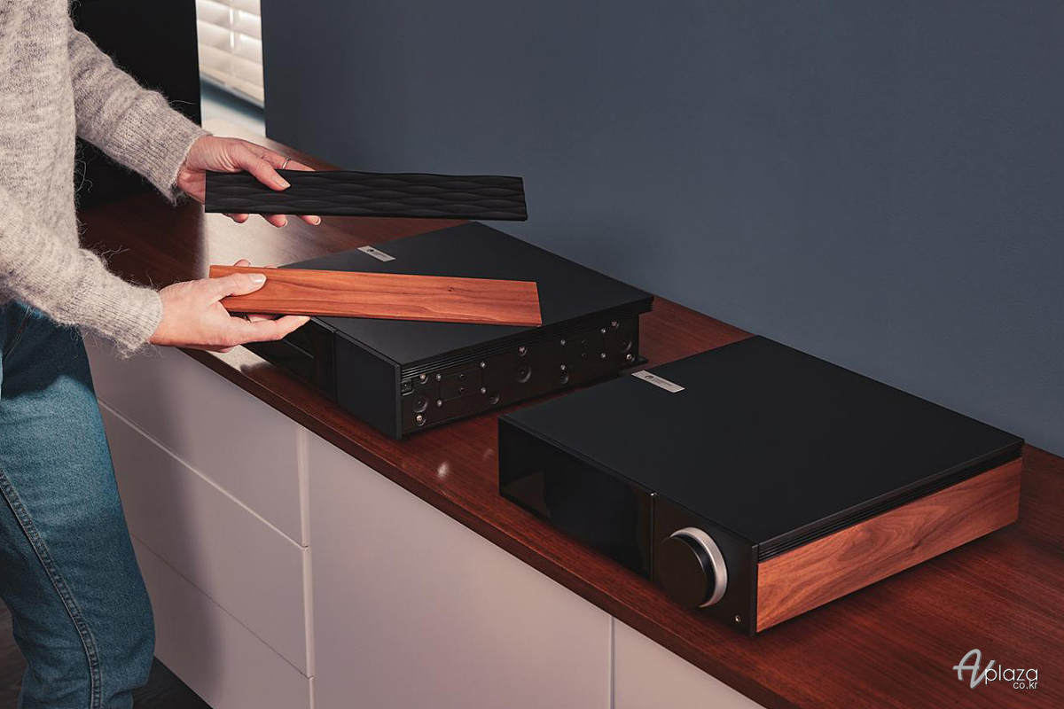 캠브리지 오디오의 에보 150은 스피커만 추가하면 완성되는 올인원 스트리밍 하이파이 제품으로 심플한 디자인과 다양한 연결성을 특징으로 합니다. 에보 150은 채널당 150W 출력을 제공합니다. 캠브리지오디오 런던 스튜디오의 수석 디자이너 게드 마틴(Ged Martin)은 신제품을 위해 프리미엄 소재를 선택했으며, 지난 1968년 캠브리지오디오의 최초 제품인 P40의 목재 트림에서 영감을 얻었다고 합니다. 매끄러운 블랙 알루마이트 처리된 알루미늄 캐비닛을 보완하는 월넛 컬러의 목재 패널은 측면 패널로 선택할 수 있습니다. 또한 재활용 종이로 만든 혁신적인 신소재 리치라이트(Richlite)로 만든 블랙 패널을 선택할 수 있어 취향에 따라 측면 패널을 선택할 수 있습니다.