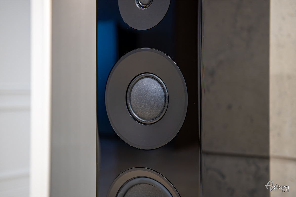 NS-2000A에 탑재한 80mm 자이론 돔 미드레인지 드라이버의 모습입니다.