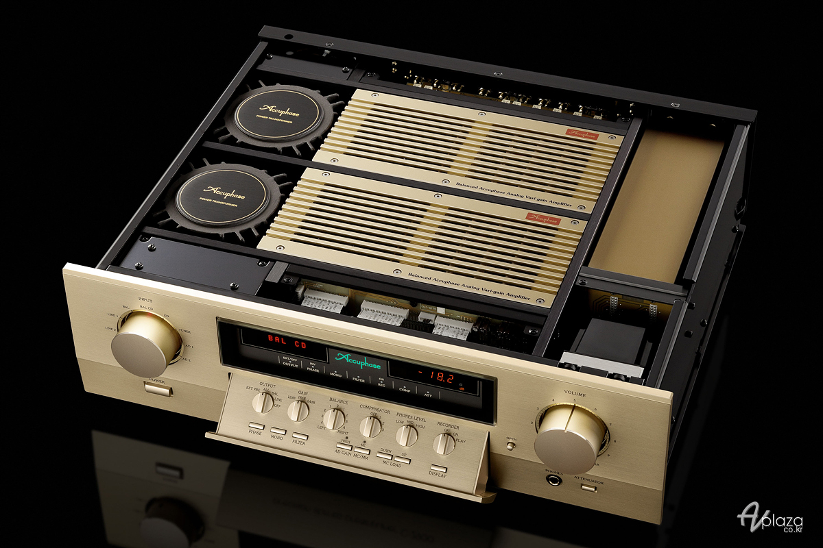 아큐페이즈 C-2900은 자사의 핵심 기술인 밸런스드 AAVA(Accuphase Analog Vari-gain Amplifier) 볼륨 회로를 탑재하여 프리앰프의 성능을 한 차원 높인 모델입니다. 일반적인 가변 저항 방식을 사용하지 않고 독자적인 전압-전류 변환 회로를 통해 볼륨을 조절함으로써, 낮은 음량에서도 신호 대 잡음비(SNR)가 획기적으로 유지되며 좌우 채널 간의 편차나 임피던스 변화로 인한 음질 열화를 원천적으로 제거했습니다. 입력단부터 출력단까지 모든 신호 경로가 풀 밸런스(Fully Balanced) 구조로 설계되어 있어 외부 노이즈의 간섭 없이 극도로 순수한 신호 전송을 보장합니다.