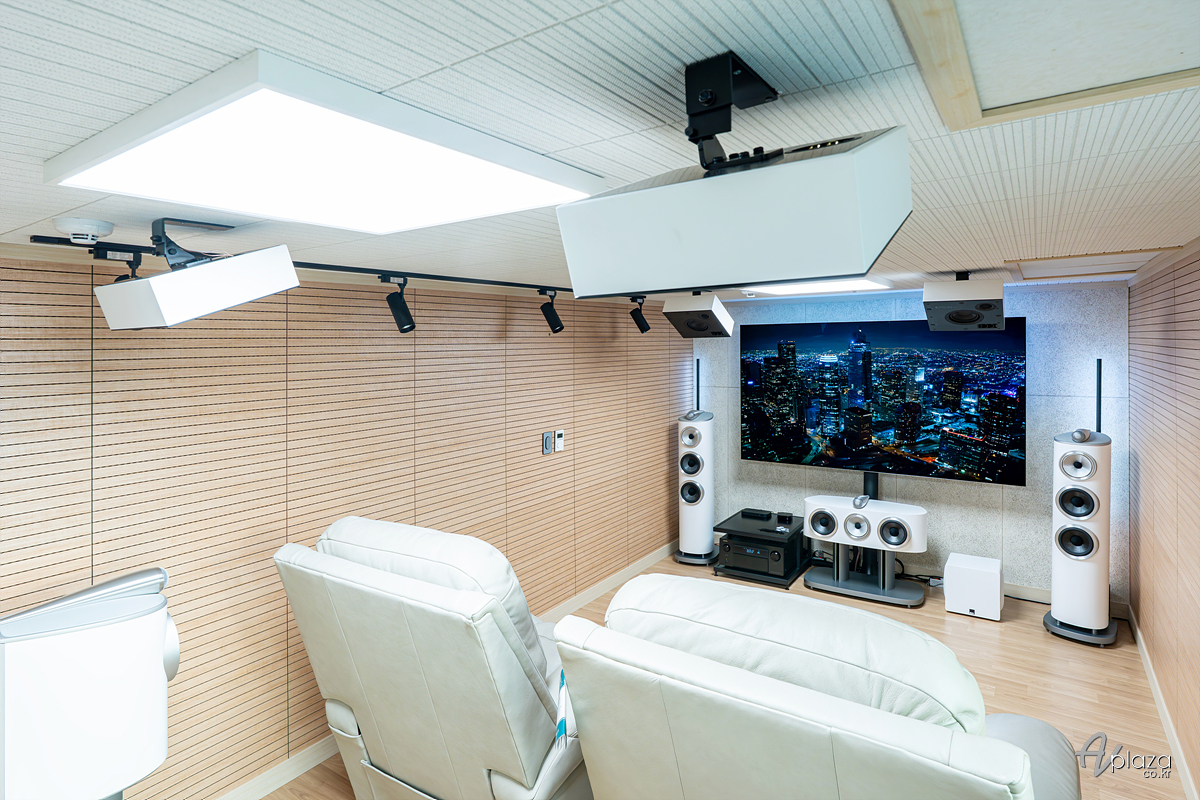 B&W 800 시리즈 다이아몬드 제품군과 PMC Ci 시리즈 조합으로 5.1.4채널 홈시어터 시스템을 구축하였습니다.