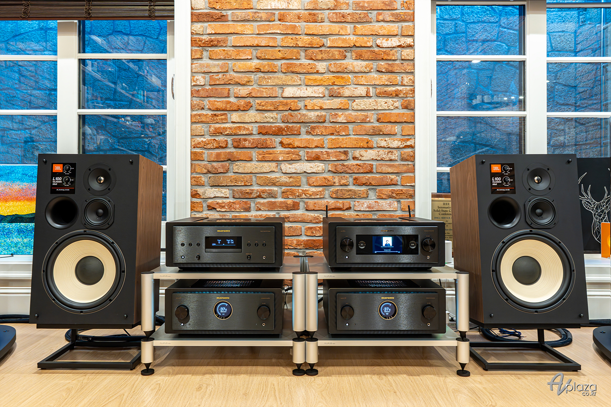 설치에는 영국을 대표하는 스피커 제조사 B&W(Bowers & Wilkins) 800 시리즈 다이아몬드 제품 중 801 D4 시그니처 캘리포니아 벌 글로스(California Burl Gloss) 플래그십 스피커와 마란츠(Marantz) 10 시리즈 인티앰프 모델 10(MODEL 10)을 바이앰프(Bi-Amp) 모드로 연결하였습니다. 소스기기는 마란츠 10 시리즈 네트워크 플레이어 LINK 10n과 SACD/CD 플레이어 SACD 10을 사용하였습니다. 오디오랙은 알루퍼스(Alufus) 벨라(Vela)를 사용하였습니다.