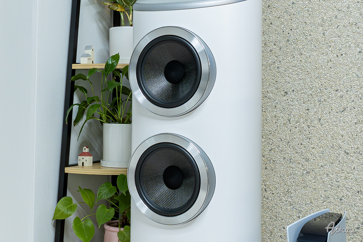 저역과 캐비닛 구조에 있어서도 타협 없는 기술력이 투입되었습니다. 항공 우주 기술에서 착안한 두 개의 180mm 에어로포일(Aerofoil) 콘 우퍼는 가볍고 단단하여 불필요한 공진 없이 깊고 빠른 반응 속도의 저음을 구현하며, 이를 감싸는 캐비닛은 곡면형의 리버스 랩(Reverse Wrap) 구조와 견고한 알루미늄 백 플레이트로 보강되어 통 울림을 완벽하게 제어합니다. 하단에는 다운 파이어링 포트의 공기 흐름을 정밀하게 조절하는 육중한 알루미늄 플린스(Base)가 적용되어 설치의 안정성을 높였으며, 결과적으로 스피커의 존재는 사라지고 음악만이 공간을 가득 채우는 정교하고 입체적인 홀로그래픽 사운드 스테이지를 완성합니다.
