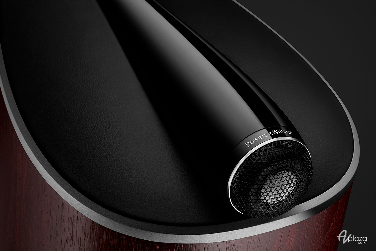 캐비닛 구조 또한 B&W의 독보적인 엔지니어링을 보여줍니다. 804 D4는 상위기종 800 시리즈와 동일한 리버스 랩 캐비닛(Reverse Wrap Cabinet) 설계를 채택해, 내부 공진을 획기적으로 줄이고 강성을 극대화하였습니다. 전면 배플을 뒤로 감싸듯 설계된 이 구조는 소리의 분산 특성을 개선하며, 트위터와 미드레인지 드라이버가 한층 더 정밀하게 시간축상으로 정렬되도록 합니다. 또한 새로운 알루미늄 탑 플레이트는 구조적 안정성을 강화함과 동시에, 고급스러운 질감의 나파 가죽 마감으로 미적 완성도를 더했습니다.