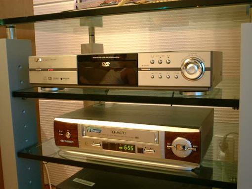 DVDP, VCR, 케이블TV 셋탑박스, 앰프의 구성으로 장식장은 바우하우스랙입니다.