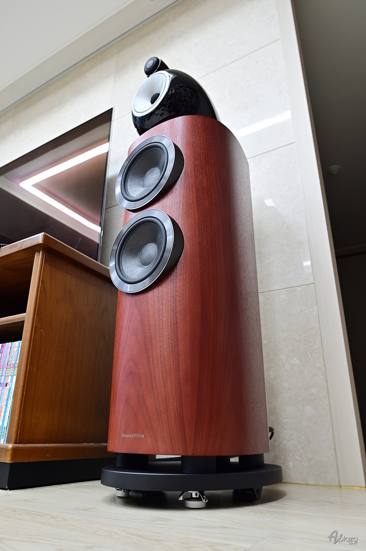 B&W 803 D3 우측 채널. 로즈우드 컬러가 인테리어와 잘 어울립니다.