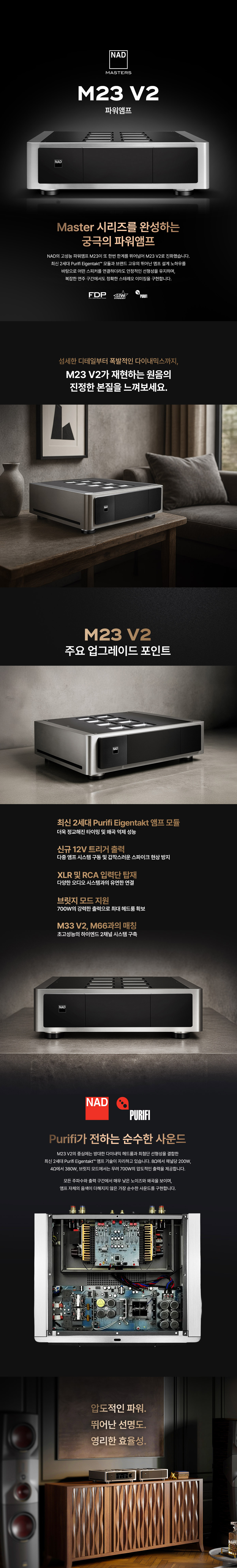 1. 품명 및 모델명 : M23 V2 2. 전기용품 안전인증 필 유무 : R-R-Sor-M23V2 3. 동일모델의 출시년월 : 25년 8월 4. 수입원 : (주)소리샵 5. 제조사 : NAD 6. 제조국 : 중국 7. 품질보증기준 : 수입원 규정에 따름 8. A/S 책임자와 전화번호 : (주)소리샵 / 02-3272-8584