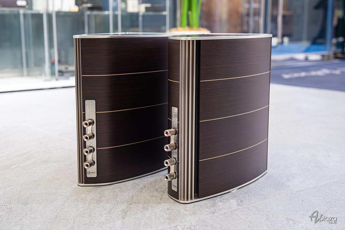 웬지 색상 마감이며 내외관 매우 좋으며 AV플라자 매장에서 전시하던 스피커로 내외관 모두 좋습니다.