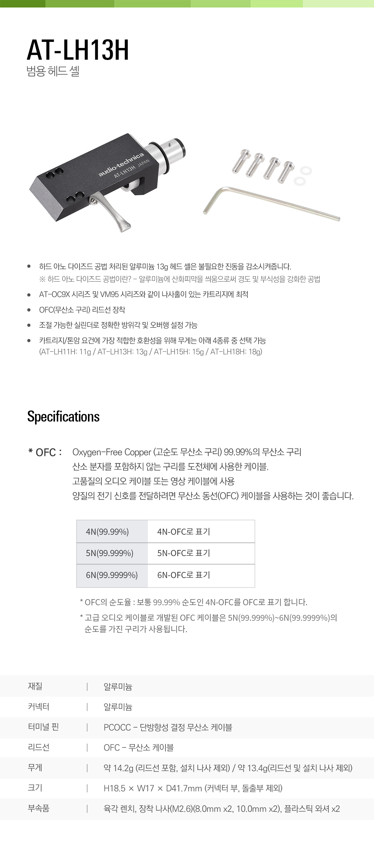 Audio Technica(오디오테크니카) AT-LH13H 헤드쉘