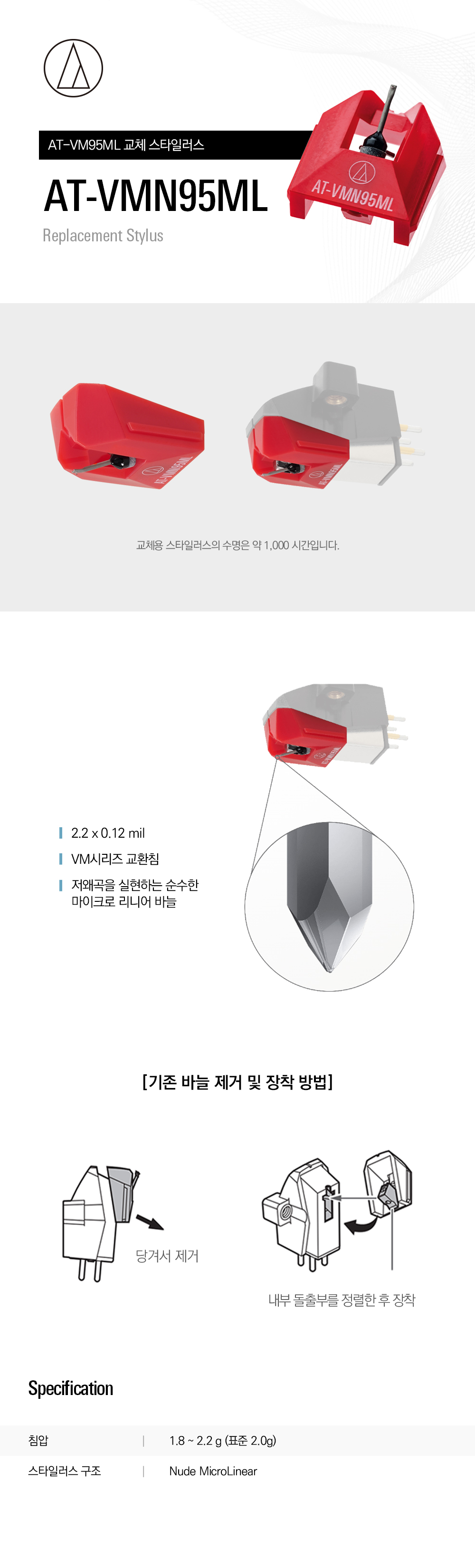 Audio Technica(오디오테크니카) AT-VMN95ML 스타일러스